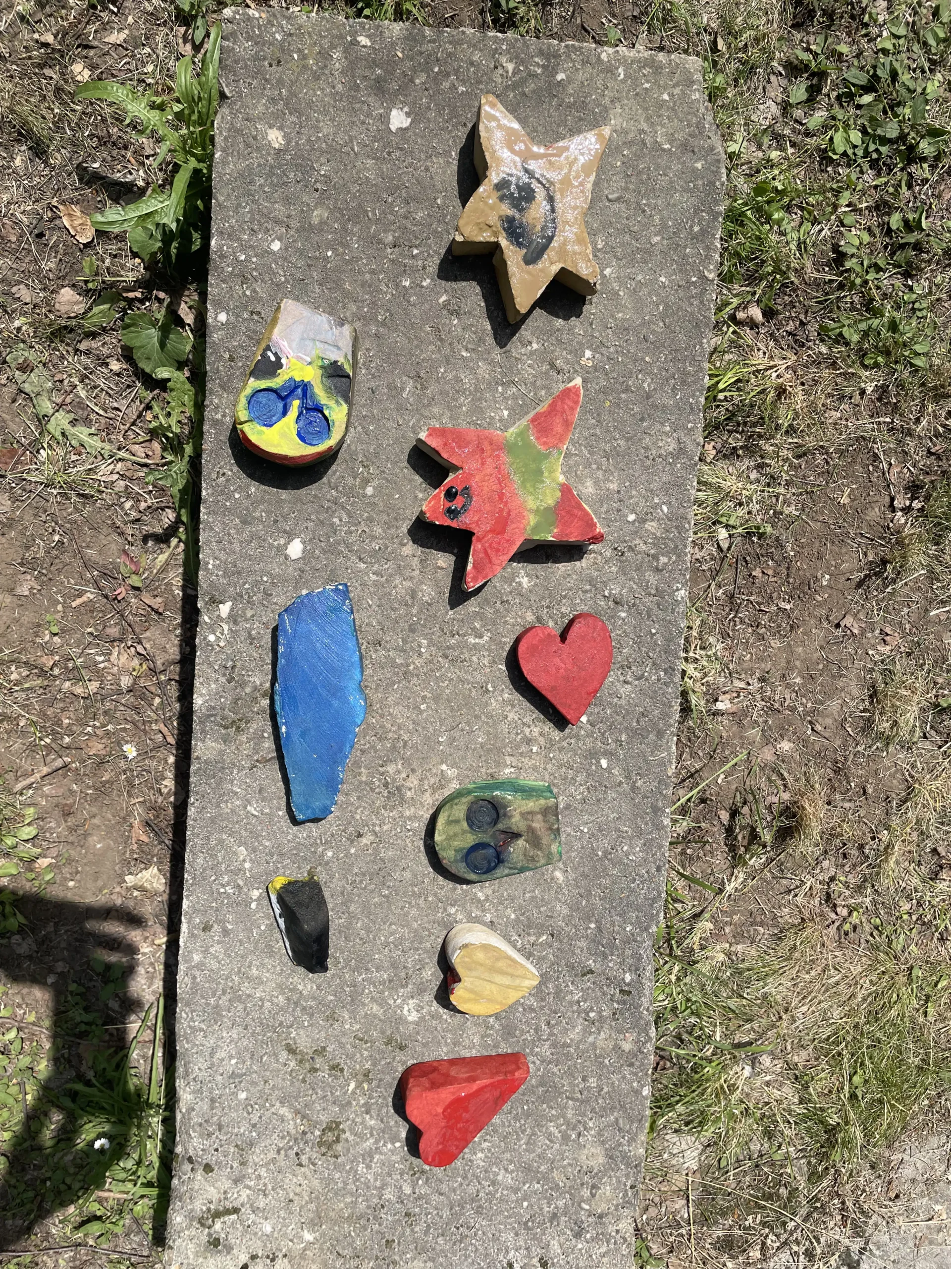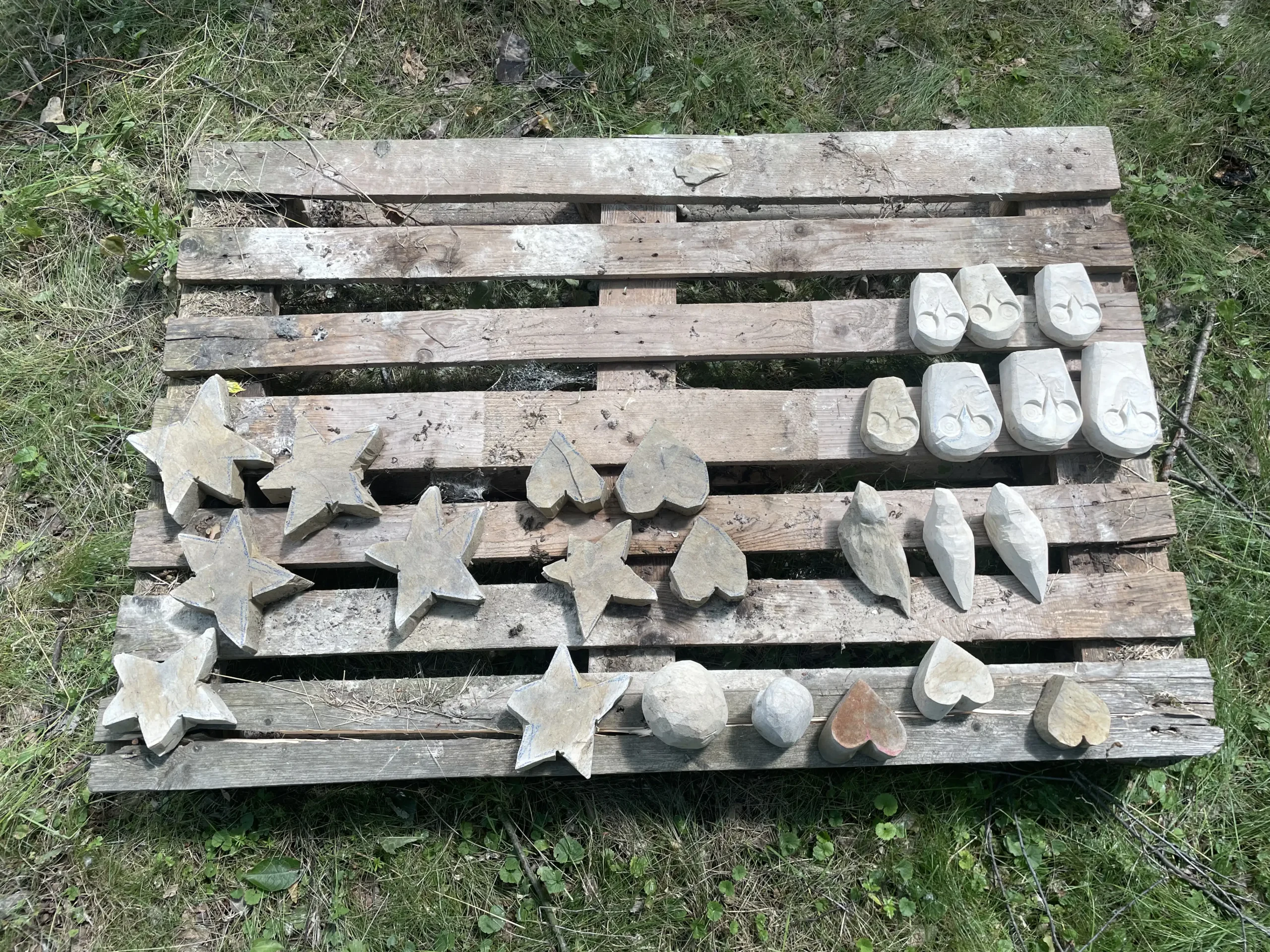 Die ganze Woche über konnten die Kinder sich Steine aussuchen, sie behauen und beschleifen. Für die jüngeren hatten die Bildhauer Rainer Pleß und Markus Petersen kleine Sterne, Herzen, Fische, Eulen und Vögel aus Elbsandstein vorgefertigt und zeigten, wie die Kanten weich geschliffen werden und die Figuren für das Bemalen vorbereitet werden. Sie hatten gar nicht mit der großen Nachfrage gerechnet und mussten immer wieder für Nachschub sorgen.