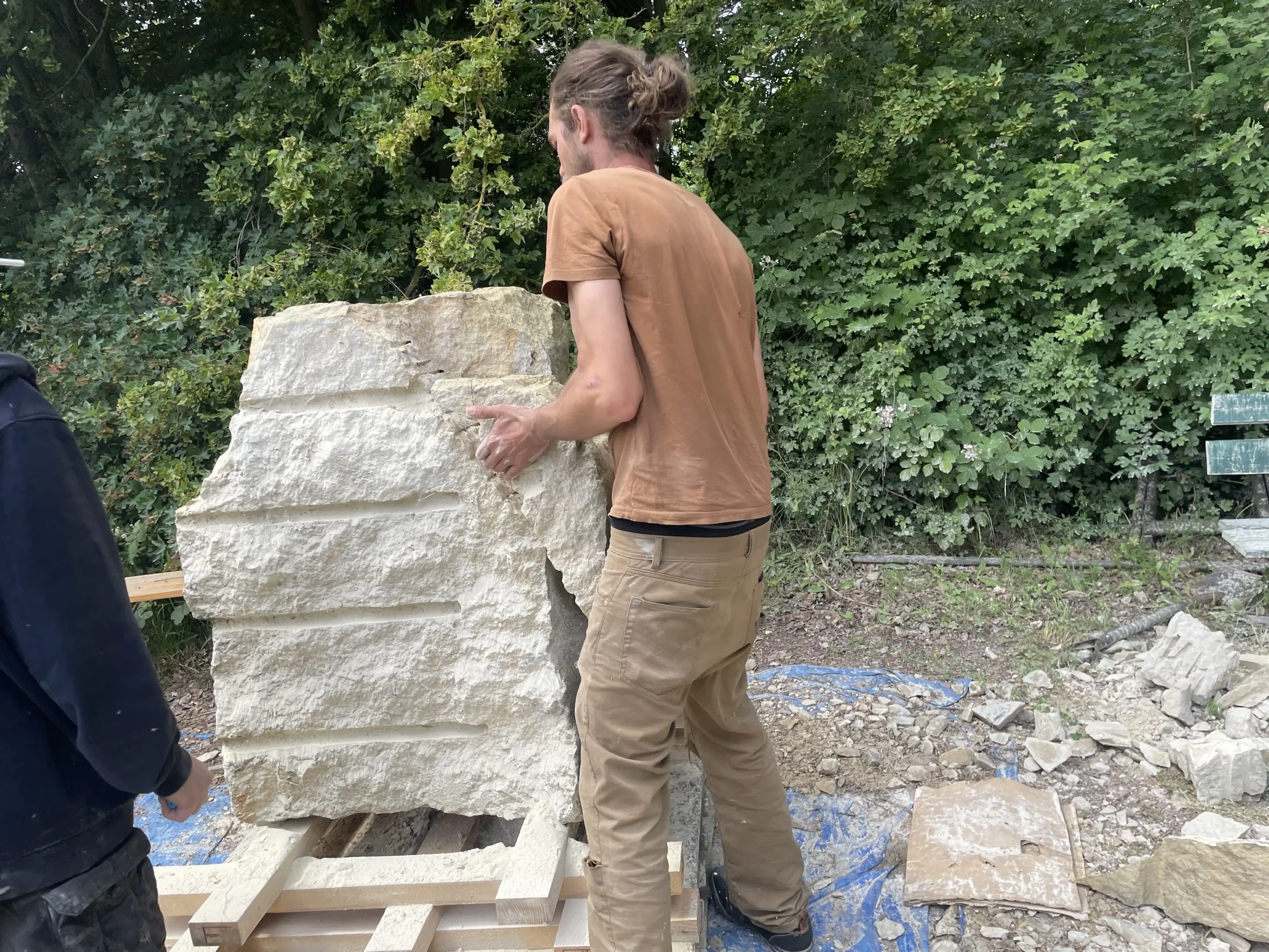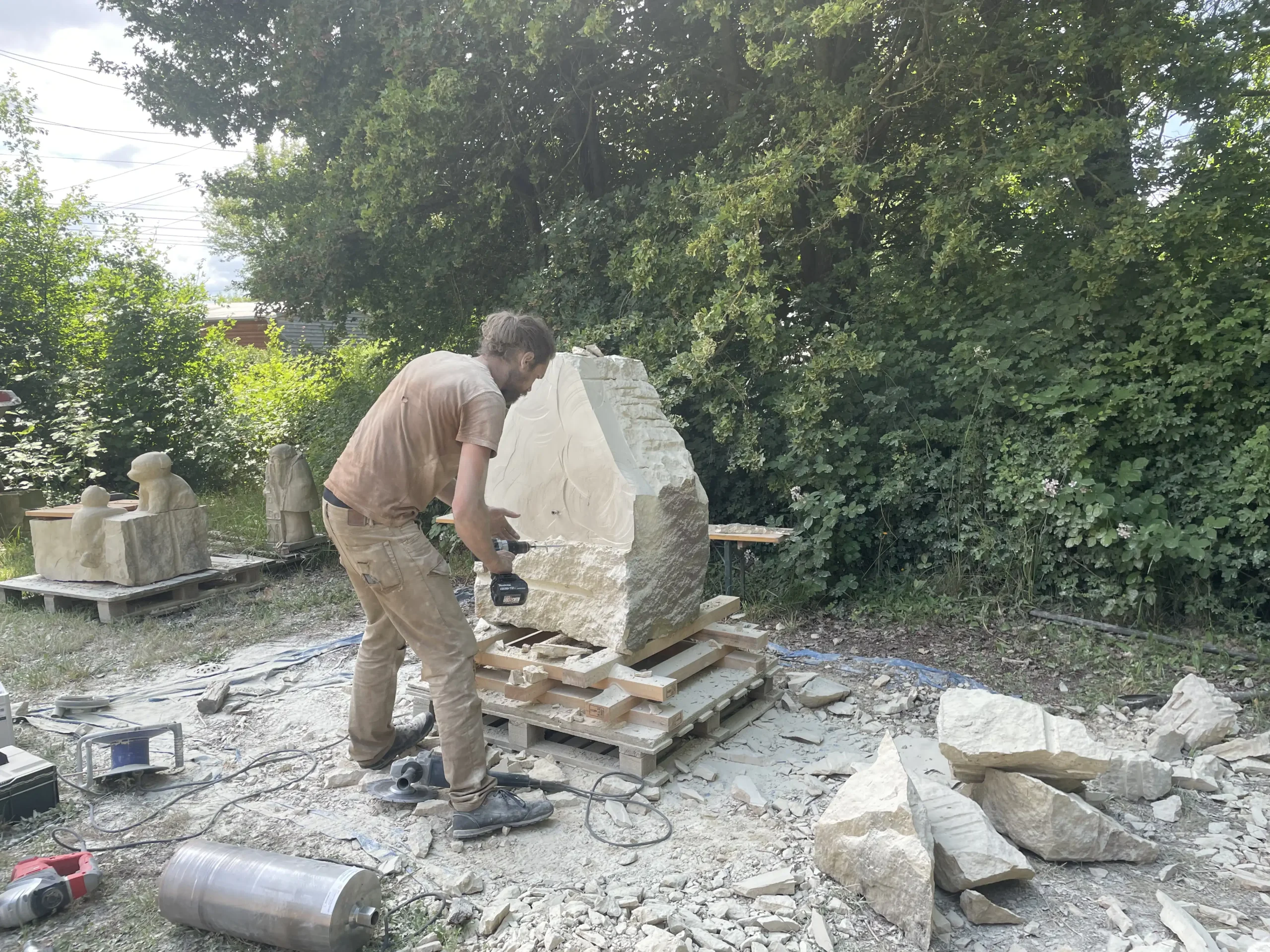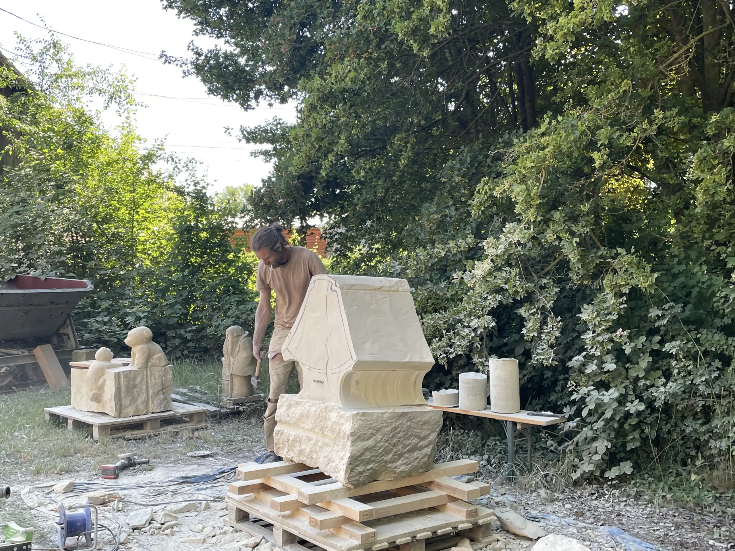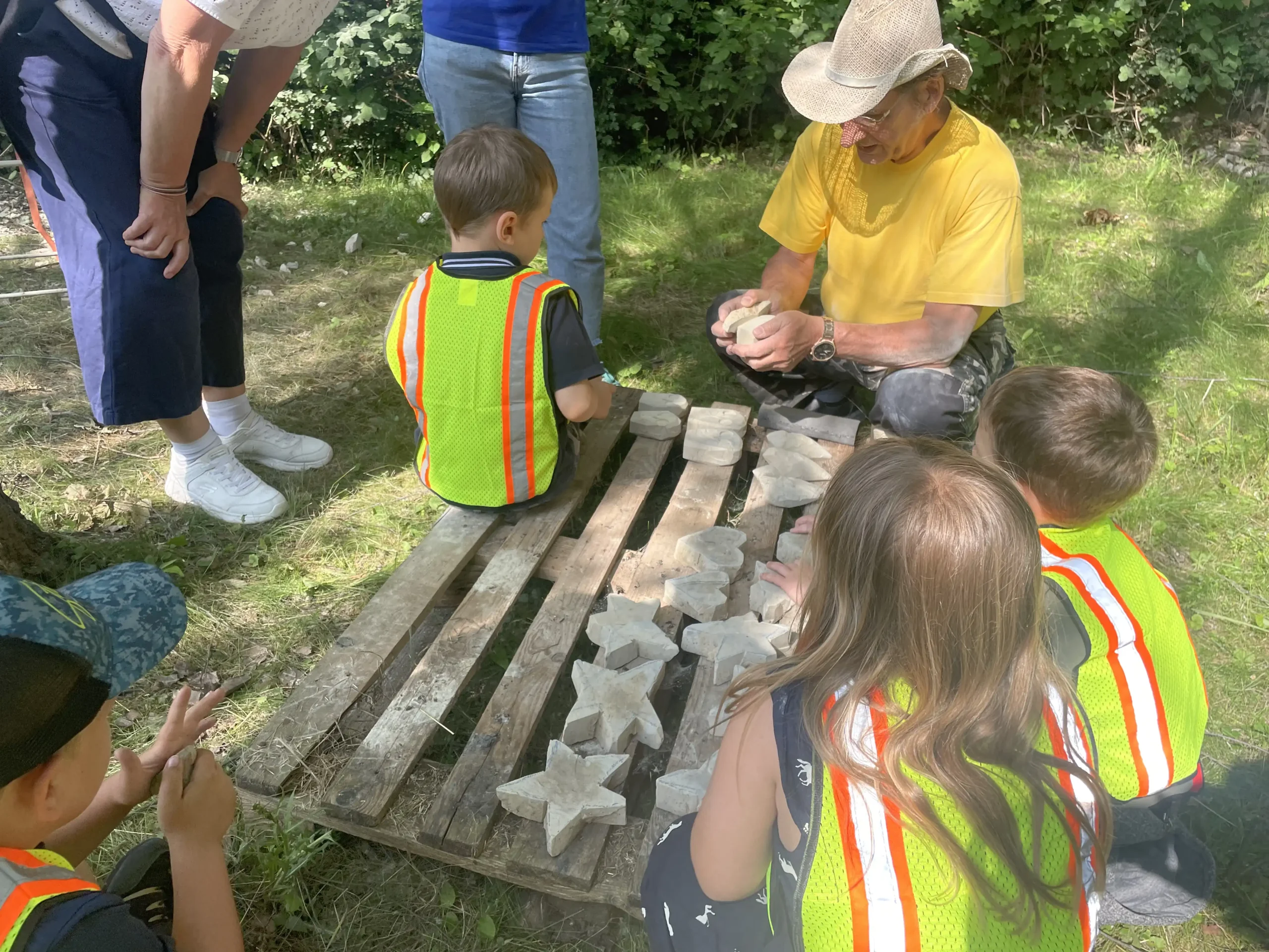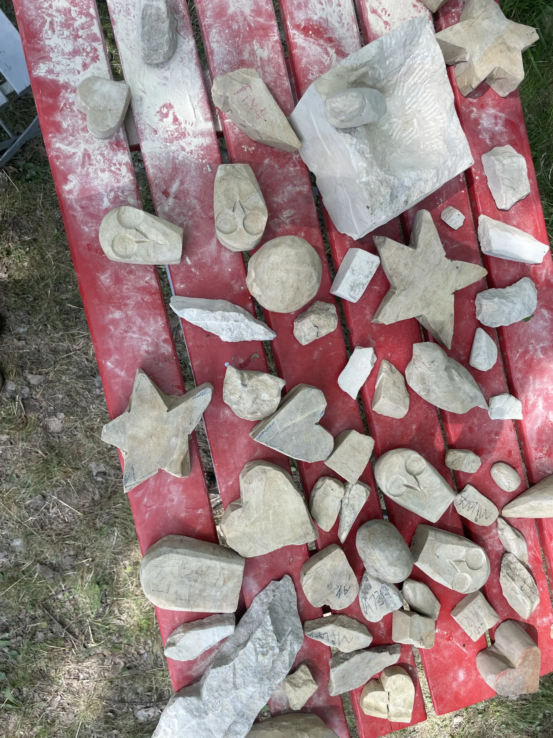 In der Pause schauten sie sich neugierig die Arbeiten der erwachsenen Bildhauer an und ließen sich erklären, wie die Profis mit Stein arbeiten. Ein entspannter, staubiger und sehr schöner Tag – mit vielen kleinen Kunstwerken und Begeisterung fürs Selbermachen!“