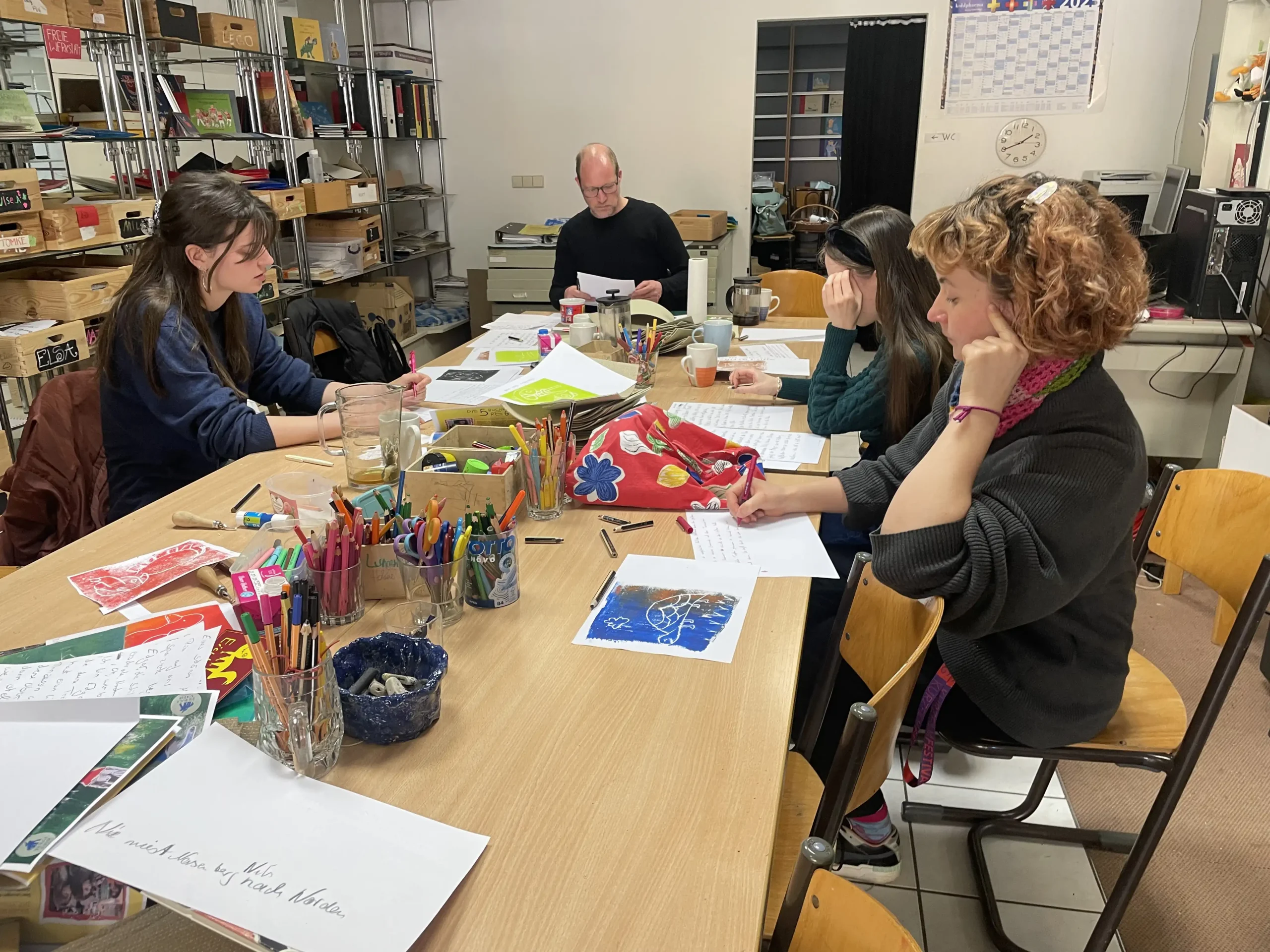 Am 1.Juli 2025 betreuten wir Kinder aus der Grundschule in Pegau. Bevor wir die Kinder aus dem Hort abholten, bereiteten wir die Materialien und die Arbeitsplätze vor. Um 14 Uhr fingen wir an, an den vorliegenden Geschichten weiterzuarbeiten. Wir betreuten die Kinder spielerisch im Schreibprozess. Die Geschichten wurden dann vorgelesen. Bei Ungereimtheiten in der Geschichte wurden Tipps gegeben. Wenn eine Geschichte passt, wird sie nochmal schön und sauber vom Kind abgeschrieben damit sie dann später digital bearbeitet werden kann.